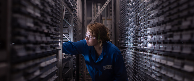 A researcher reaches into the compound library at the Drug Repurposing Hub. The Hub's library contains more than 7,000 compounds including pre-clinical compounds, drugs in clinical trials, and drugs that have received FDA approval.
