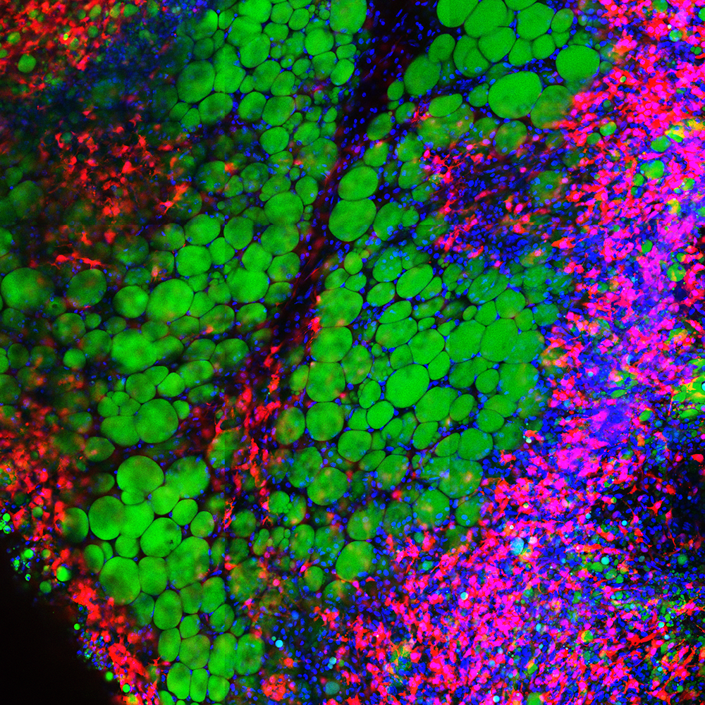 Obesity - a microscopic view of tissue, showing different cell types and structures within adipose tissue