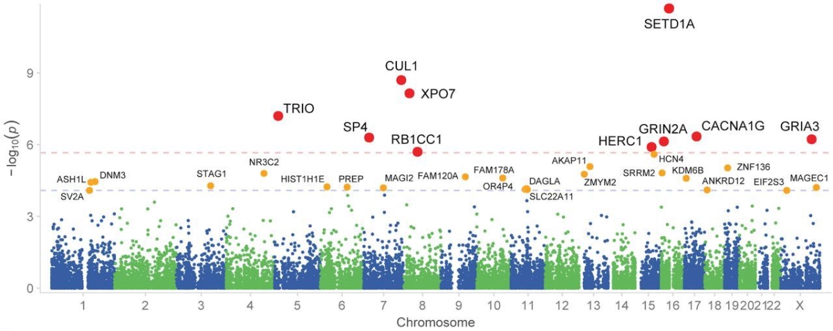 Singh TJ, Neale BM, Daly MJ, and the Schizophrenia Exome Meta-Analysis (SCHEMA) Consortium. Rare coding variants in 10 genes confer substantial risk for schizophrenia. Nature. Online April 6, 2022. DOI: 10.1038/s41586-022-04556-w.